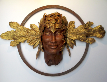 In this sculptural work, the traditional material of pearwood—with its fine grain and cultural roots in European craftsmanship—meets gilded zucchini leaves, an organic byproduct of food production. The combination points to a deliberate tension between durability and the ephemeral, between natural rawness and artistic transformation.