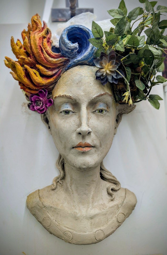 Thus, the bust embodies not only an aesthetic unity of the four elements but also the fusion of two worlds: the virtual creativity of the machine and the physically tangible creation of the artist.